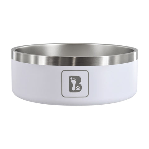 Perfect for your pampered pooch! The Brad Pattison Pet Wellness KYA Stainless Steel Dog Bowl is a rugged, yet sleek looking stainless steel dog bowl designed to withstand all of the bumps and jostles your furry friend can give. The durable bowl is easy to clean and features a food grade, double wall made of stainless steel both inside and out. To reduce the amount of mess, the bowls are equipped with a non-slip grip silicone circle pad on the bottom to keep the bowl in place. Dishwasher safe, rust-proof and easy to clean, the bowl is perfect for a wide variety of dog sizes and holds up to 32 ounces of either food or water. The bowl is completely pet safe and will not leach any harmful chemicals into the food or water. Comes in a sleek white colour.