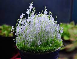 Utricularia Sandersonii grows low round leaves barely above the soil, up to 1/2" high. They also produce intriguing white flowers that resemble bunnies. These plants will grow continuously outward, filling whatever pot you put them in.