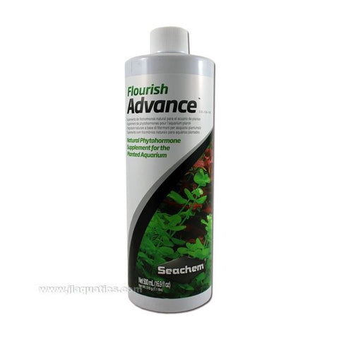 Seachem Flourish Advance is a natural phytohormone supplement for sensitive planted aquariums, packed with beneficial minerals and nutrients that are necessary to regulate and enhance explosive and eye-popping plant growth. This growth enhancer boosts mineral absorption allowing your plants to battle harsher diseases and dramatically stimulate the growth of roots and shoots. Phytohormones are naturally occurring compounds that are essential in regulating developmental processes such as cell division, formation and the activity of shoot meristems, induction of photosynthesis gene expression, leaf senescence, nutrient mobilization, seed germination, root growth and stress response. All of these processes contribute to healthy, long lasting aquatic plants. For the best results, Seachem Flourish Advance should be used on a regular basis to ensure that plants are properly absorbing the wide variety essential nutrients inside of the aquarium. After approximately 10-14 days of steady use, root growth will begin beneath the surface of the substrate, followed by significantly enhanced development on both leaves and stems. It is completely safe for fish and invertebrates.